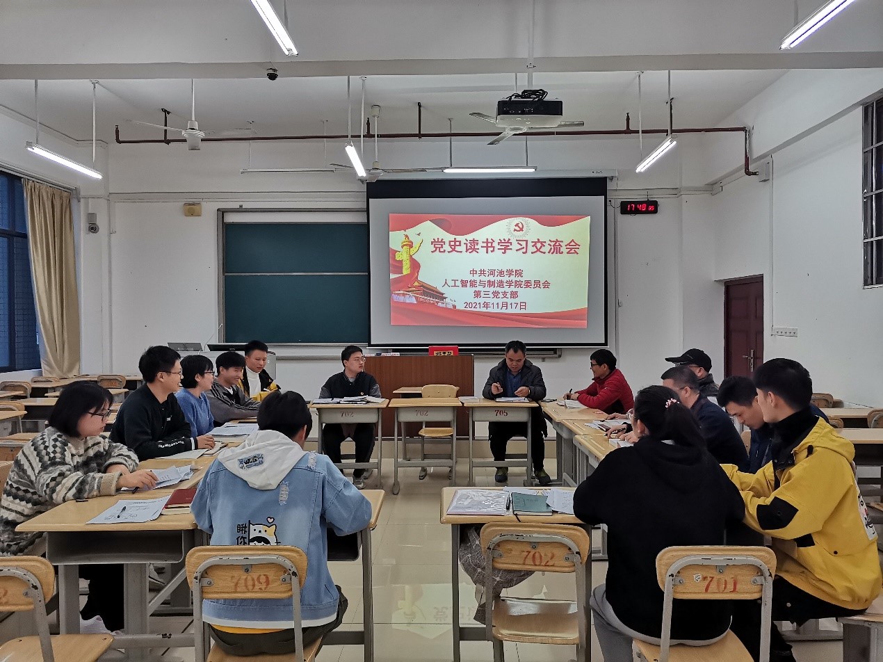 为深入开展党史学习教育,全面总结党的百年奋斗的重大成就和历史经验问题,进一步激励党员干部承担发展使命。11月17日下午,人工智能学院第三党支部召开“党史学习交流会”学习会议,本次会议由我院第三党支部书记韦吉爵同志主持。