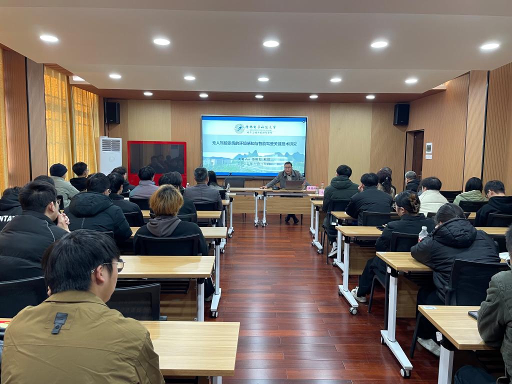 1月16日,我校特聘教授、桂林电子科技大学李海鸥、伍锡如教授一行到我院进行学术交流活动。并在综合楼207室举行了学术报告会,报告会由学院院长何奇文主持。李海鸥、伍锡如分别作题目为“半导体器件与集成电路发展趋势”和“无人驾驶系统的环境感知与智能驾驶关键技术研究”的报告,2位专家分别介绍了各自研究领域的最新成果,并结合我院一流学科建设、产业学院、创新平台以及人才培养等方面进行了深入交流。