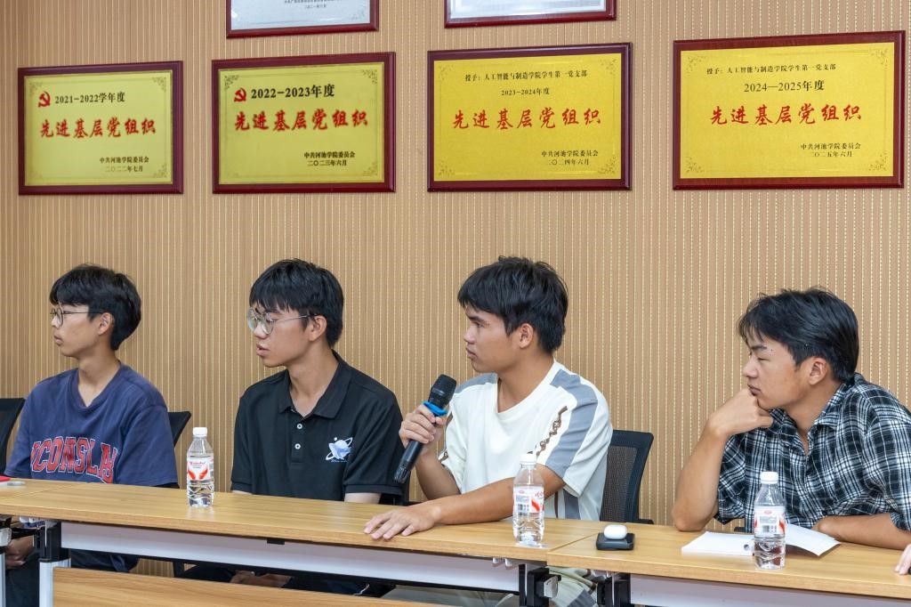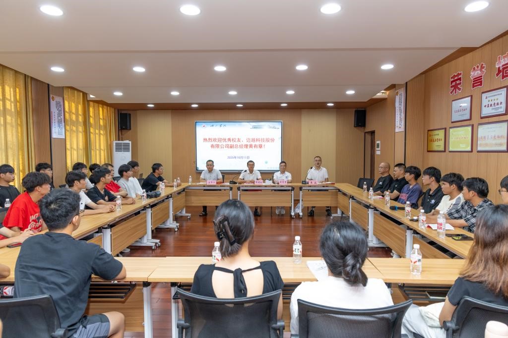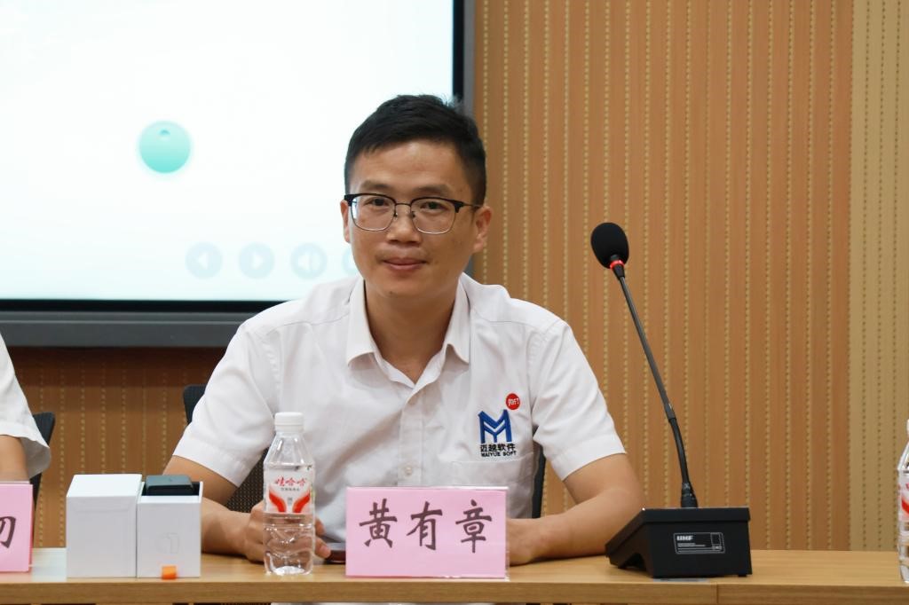 10月11日下午,在综合楼207会议室,我院机械设计制造及自动化专业2015届优秀校友迈越科技股份有限公司副总经理黄有章回到学院与青年学子展开深入的对话与交流。黄有章和同学们分享了美好又充实的校园时光,在母校学习期间得到了老师的悉心指导和鼓励,不仅较好地掌握了所学专业知识还大胆探索了计算机专业领域知识,为后来在人工智能领域的发展打下了良好基础。他鼓励同学们除打牢专业基础外还应积极参加勤工助学等社会实践活动积累实践经验。同时,黄有章回顾了其团队研发的AI翻译眼镜在第22届中国—东盟博览会、中国—东盟商务与投资峰会上“出圈”过程。就“如何快速入门AI领域”“跨专业从事AI行业遇到的困难”等问题黄有章都结合自身经历一一给予解答。