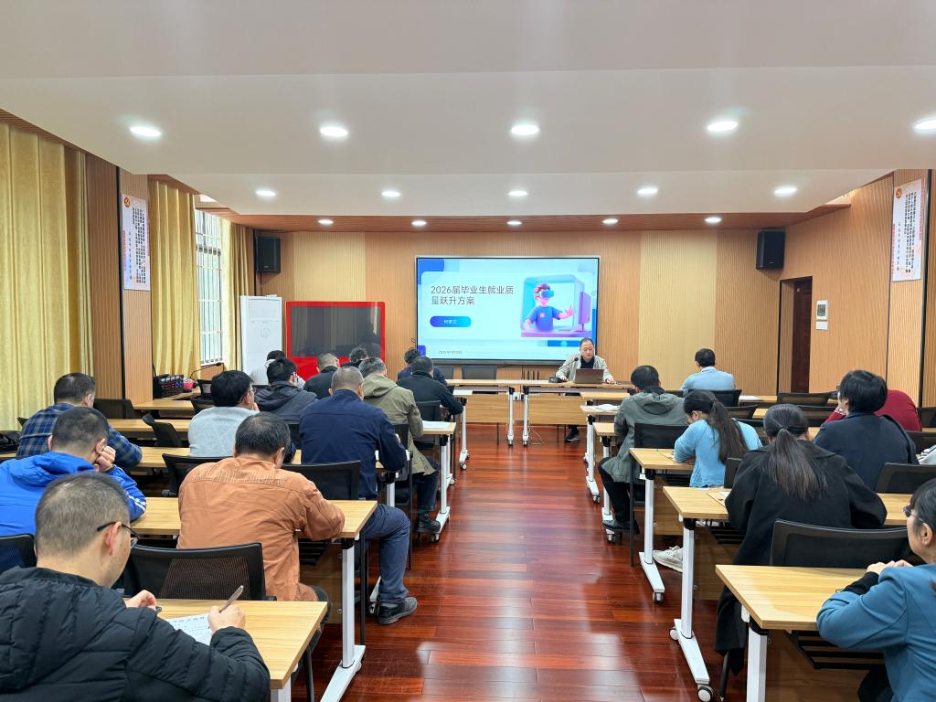 邹健初传达了学校就业工作推进会精神,并结合2025届毕业生就业数据,分析了当前就业形势与挑战。他指出,2026届毕业生就业工作应提前布局,积极适应社会需求变化,引导学生转变就业观念,实现顺利就业。