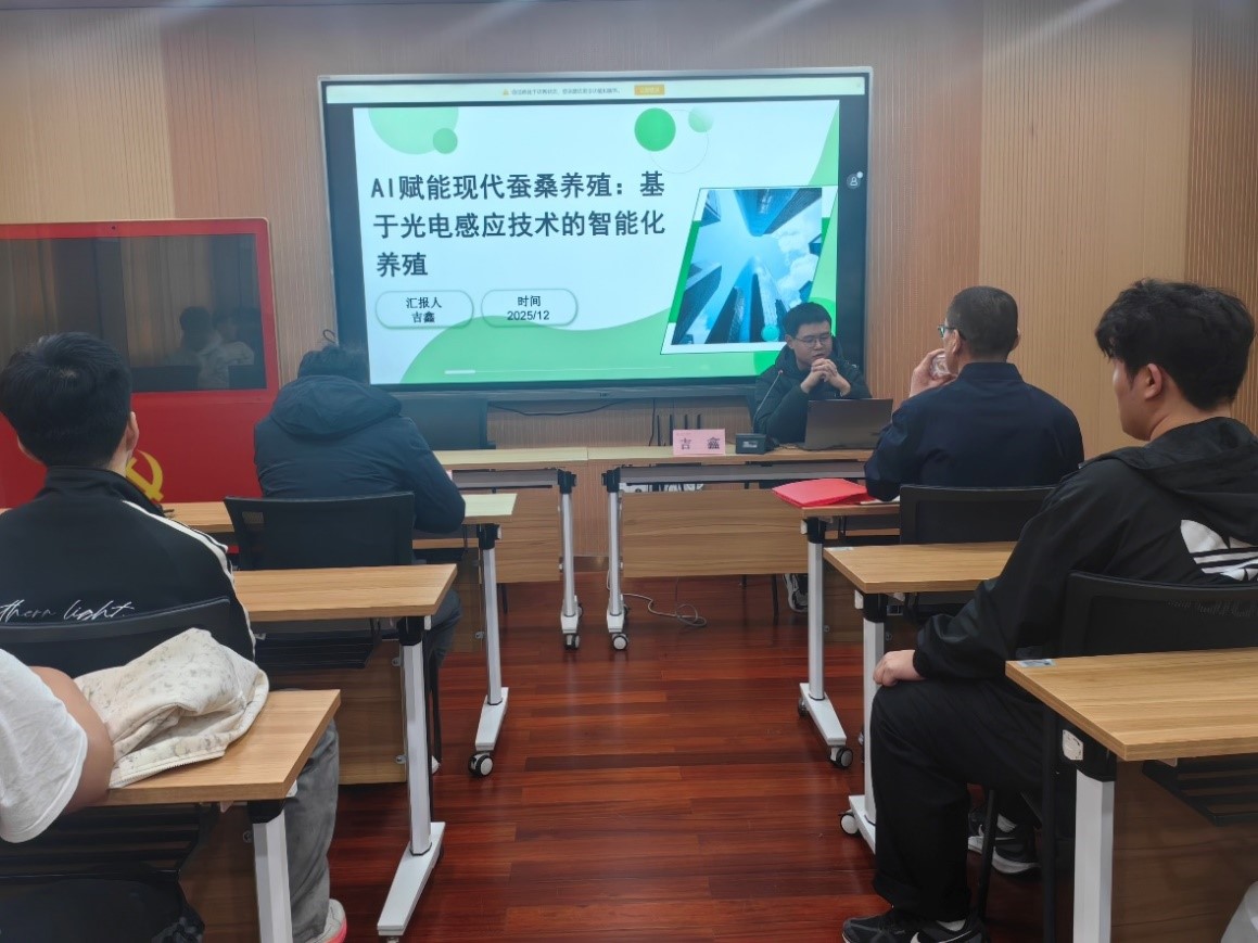 2025年12月15日下午,我院特邀上海理工大学张大卫院士科研团队的康祎博士、吉鑫博士,开展以“AI赋能现代桑蚕养殖”、“计算成像在桑蚕养殖业中的思考及应用”为主题的学术报告会。报告会由学院副院长王波主持,人工智能学院全体教职工及部分专业学生参会,为校地桑蚕产业协同创新与科研成果转化搭建了高效交流平台。