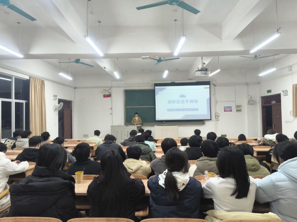 随后举办的考研分享会聚焦升学深造,2位在读研究生从择校定位、复习规划、时间管理、复试准备等方面作了系统介绍,并就备考策略与心态调整等问题与同学们深入交流。互动环节气氛活跃,同学们踊跃提问,嘉宾耐心解答,为有志于考研的同学提供了切实可行的指导。