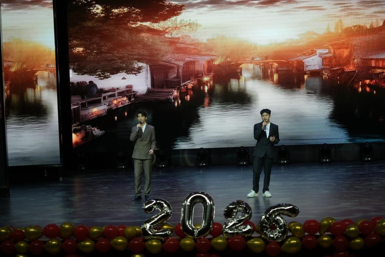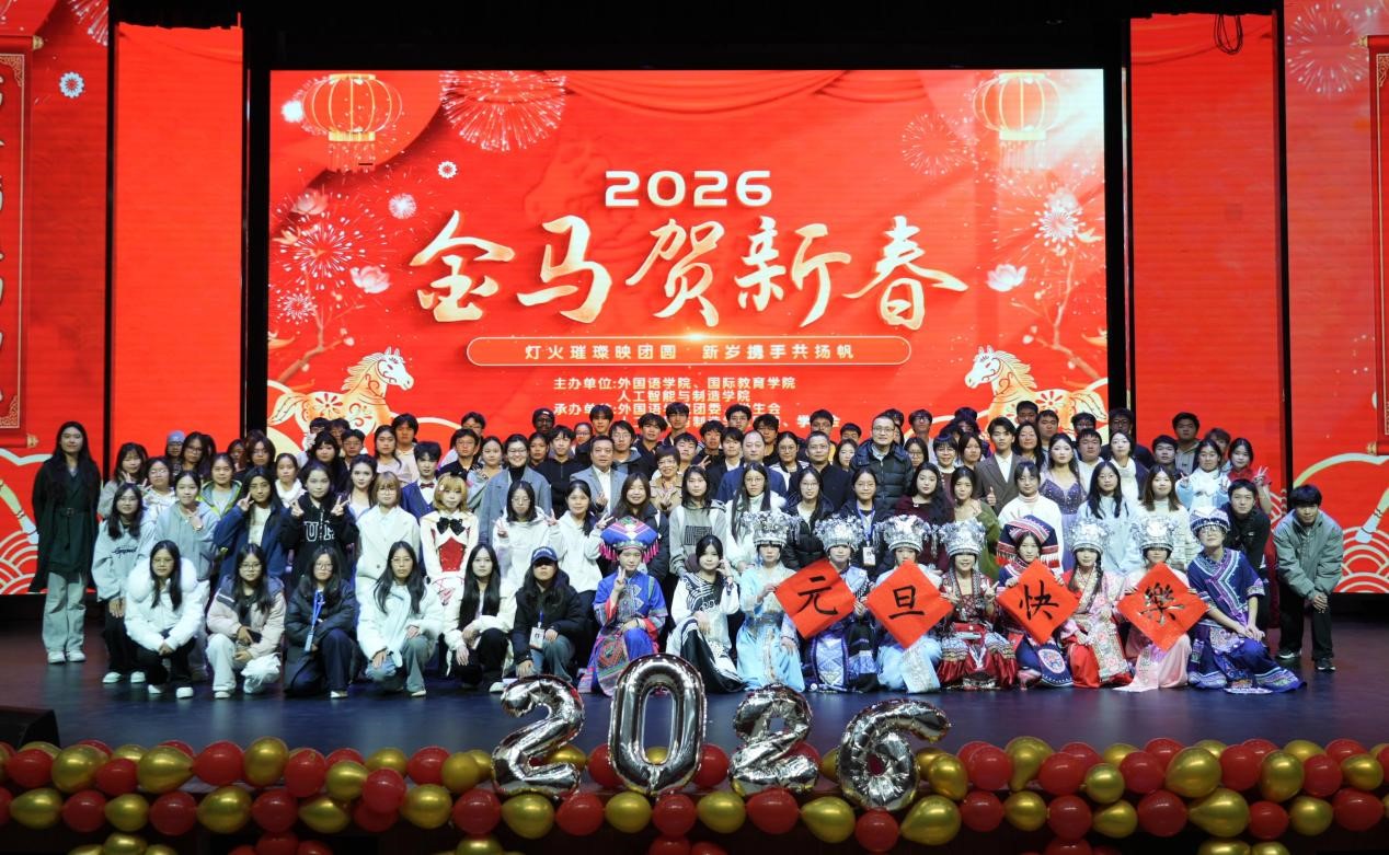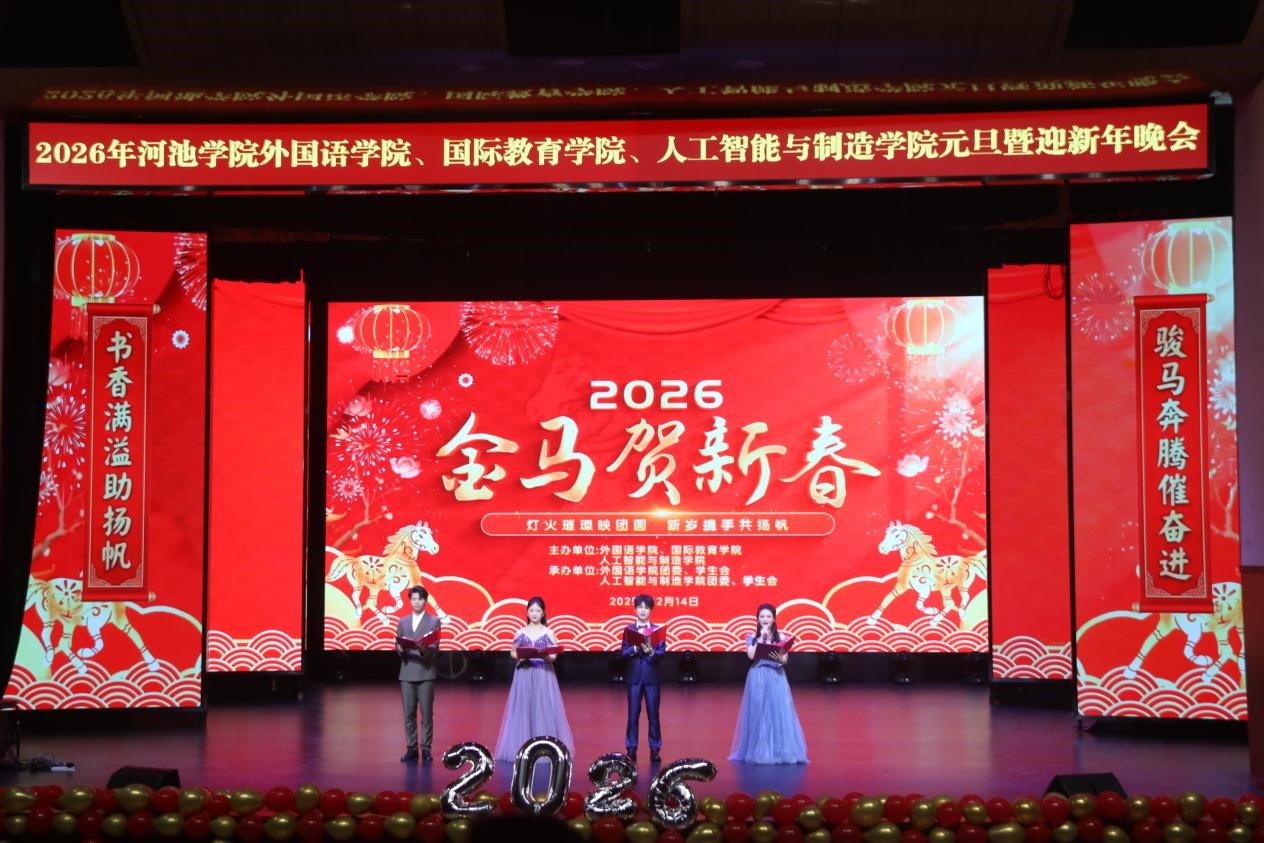 12月14日晚,东区艺术楼演播厅内灯火辉煌,欢声盈耳。由人工智能与制造学院、外国语学院与国际教育学院联合主办的“灯火璀璨映团圆,新岁携手共扬帆”迎新年晚会在此隆重举行。三院领导班子成员、办公室主任、团委书记、辅导员等领导老师莅临现场,与学子们欢聚一堂,共迎新春,为晚会增添了节日的庄重与温馨。