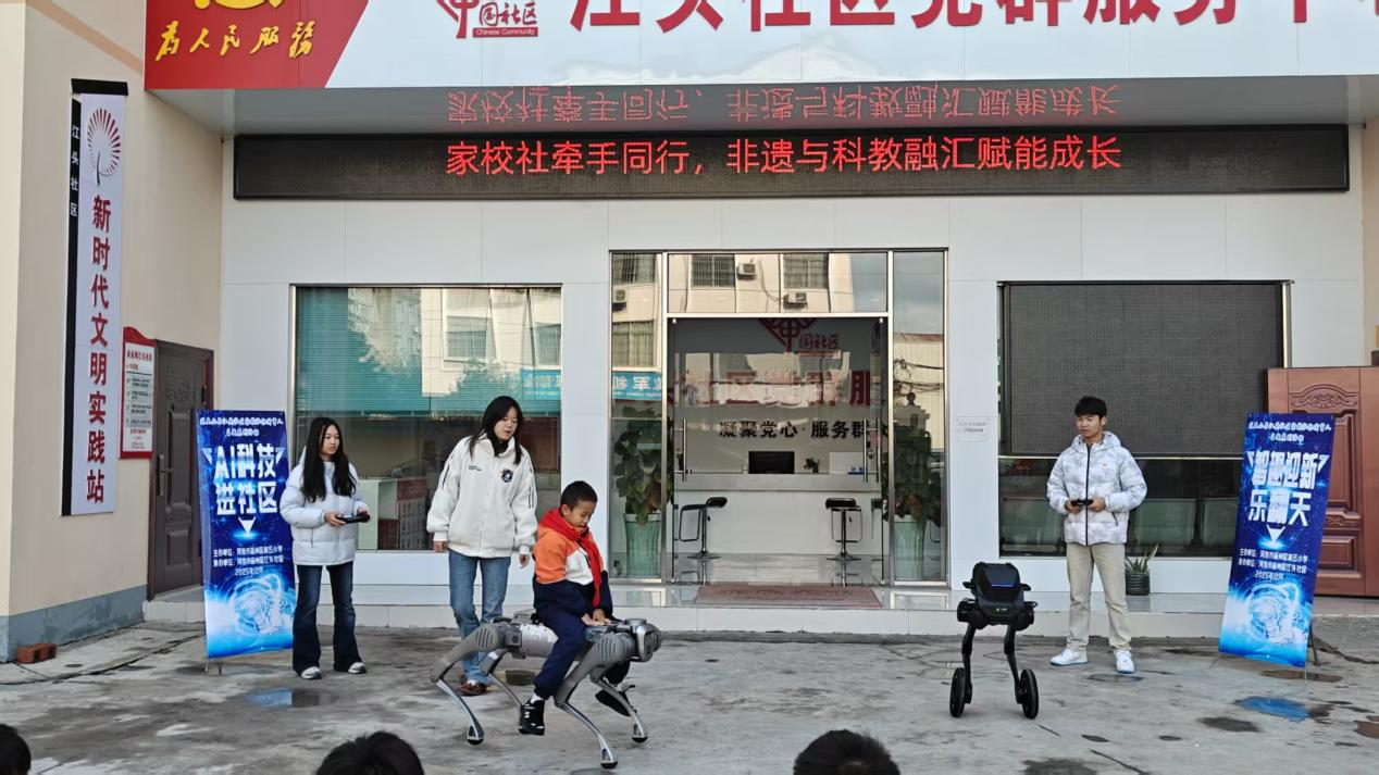 活动现场,学生党员们带着机器狗、平衡机器人等科技设备,为社区内的孩子们带来了趣味十足的科技展示与互动体验。党员同志现场操控机器狗完成漫步、避障跑、匍匐转圈等趣味表演,灵活多变的平衡机器人也牢牢吸引了孩子们的目光,趣味满满的科技互动迅速点燃了现场氛围。互动过程中,学生党员结合展示的科技设备,用通俗易懂的语言为孩子们开展科普讲解,让孩子们在沉浸式体验中直观感受科技魅力,拓宽科学视野。