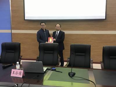 报告会前举行了兼职教授聘任仪式,学院院长彭建盛向王公儒董事长颁发了兼职教授聘书。