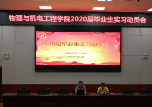 5月16日晚上,物理与机电工程学院在弘毅楼一区205报告厅召开2020届毕业生实习动员会,该院2016级工科专业全体同学参加了此次动员会。会议由物电学院副书记邹健初主持。