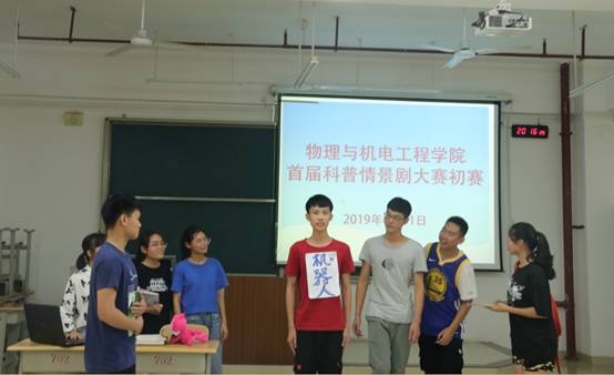 为普及科学文化知识,深化科学知识与生活的联系,6月11日晚,在格致楼702教室成功举办物电学院首届科普情景剧大赛。物电学院部分师生参加了此次活动。本次比赛评委由物电学院党委书记覃运初、物电学院副院长何奇文、物电学院党委副书记邹健初、物电学院辅导员王联芳和陈梦吉等五位老师担任。