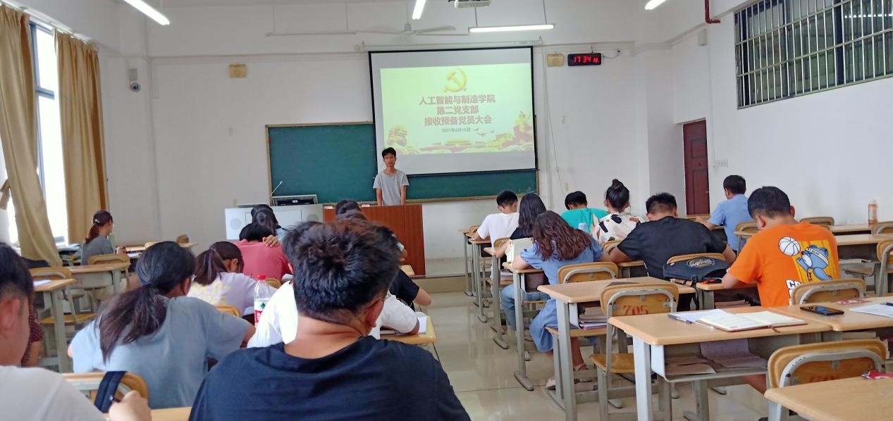 2021年6月16日下午,人工智能与制造学院第二党支部在格致楼705教室召开预备党员接收大会。大会就6名同志接收为预备党员进行讨论和表决。大会由庞惠心同志主持,第二党支部全体党员参加了此次会议。