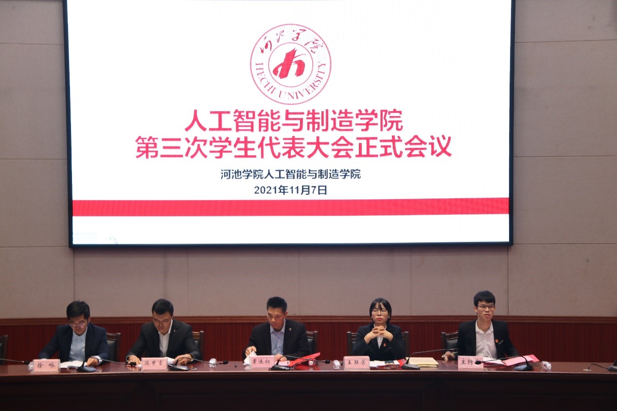 本次参会代表听取并审议了《人工智能学院学生会章程》、《人工智能学院综合测评》、《人工智能学院宿舍管理制度》,通过不记名投票选举并宣布产生了第三次代表大会常任代表和第十九届学生会主席和主席团成员。