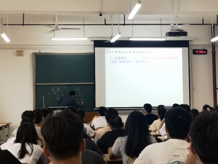 图4 吴淑杰副教授正在给人工智能学院2021级电气工程及自动化专业的学生讲授《模拟电子技术基础》课程