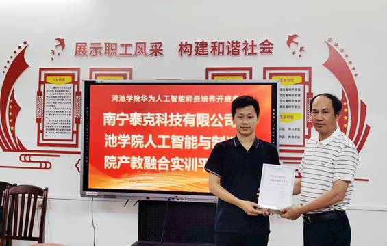 为助力人工能智能产业发展,提高师资队伍建设,8月20日,由河池学院主办,中国-东盟(华为)人工智能创新中心、南宁泰克科技有限公司(泰克教育)协办的“河池学院-华为人工智能师资培训班 ”正式启动。