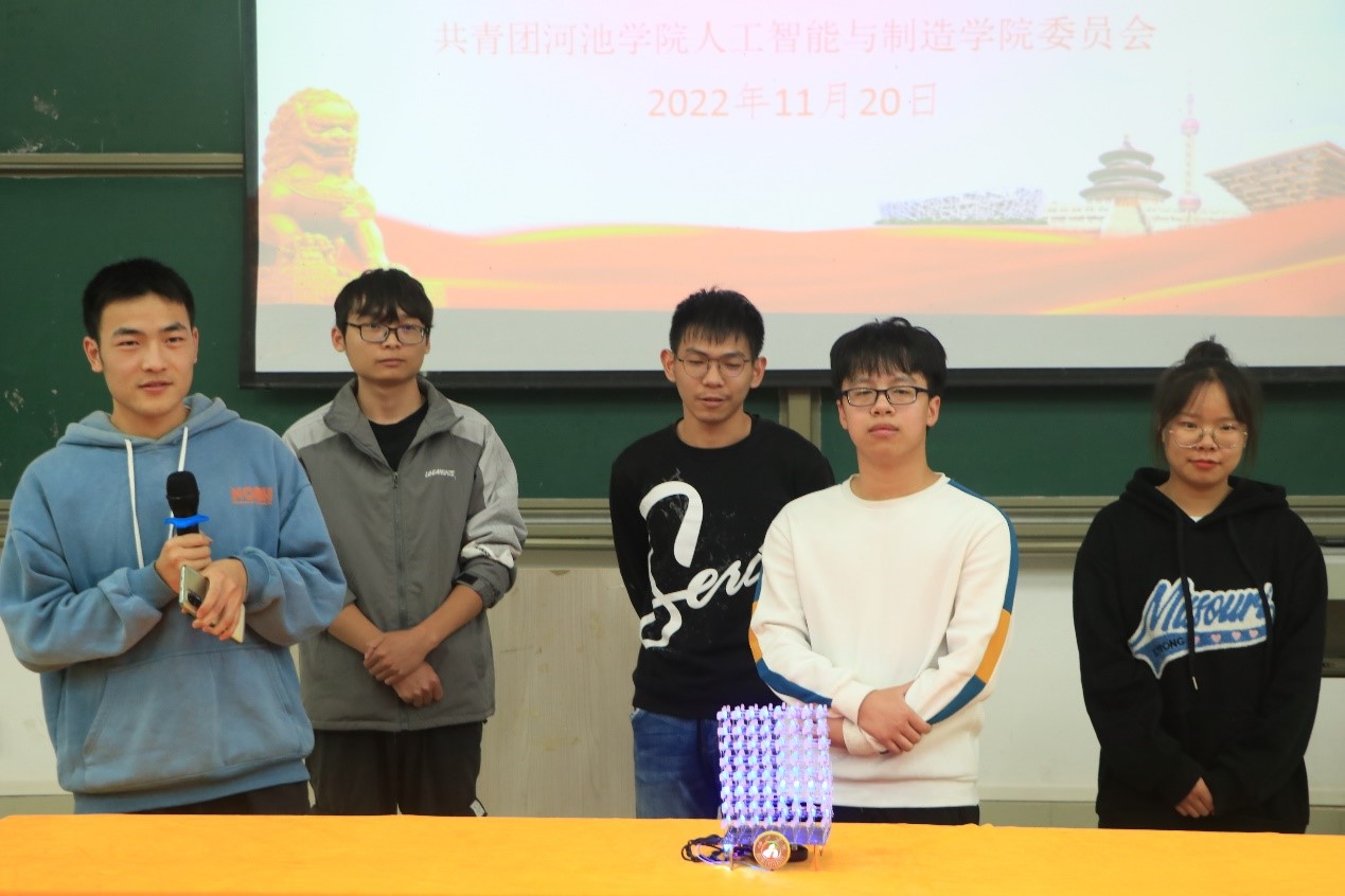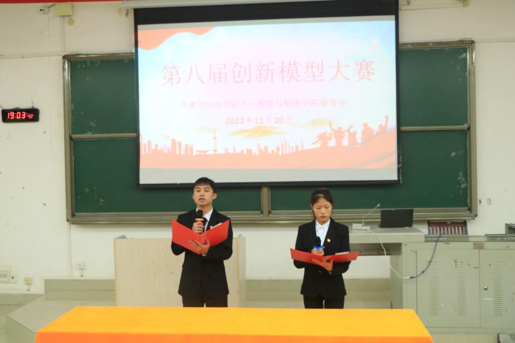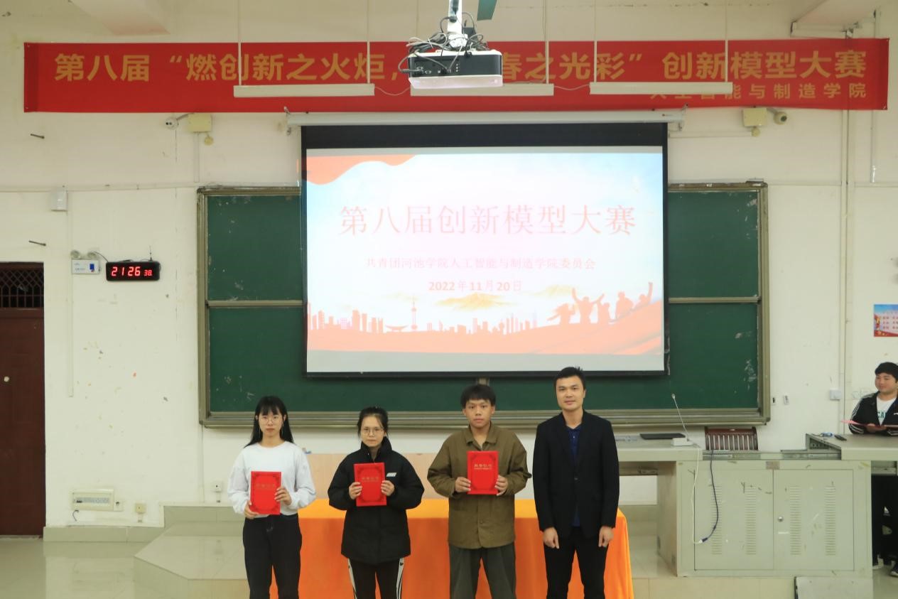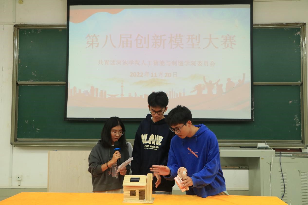 11月20日晚,我院于弘毅楼1-105教室成功举办第八届创新模型大赛。我院党委副书记邹健初、团委副书记陈梦吉、辅导员梁莹、韦日坤老师、秦薇老师担任大赛评委,参与大赛的还有团委书记王联芳,团委、学生会全体人员,各参赛队和各班代表等。