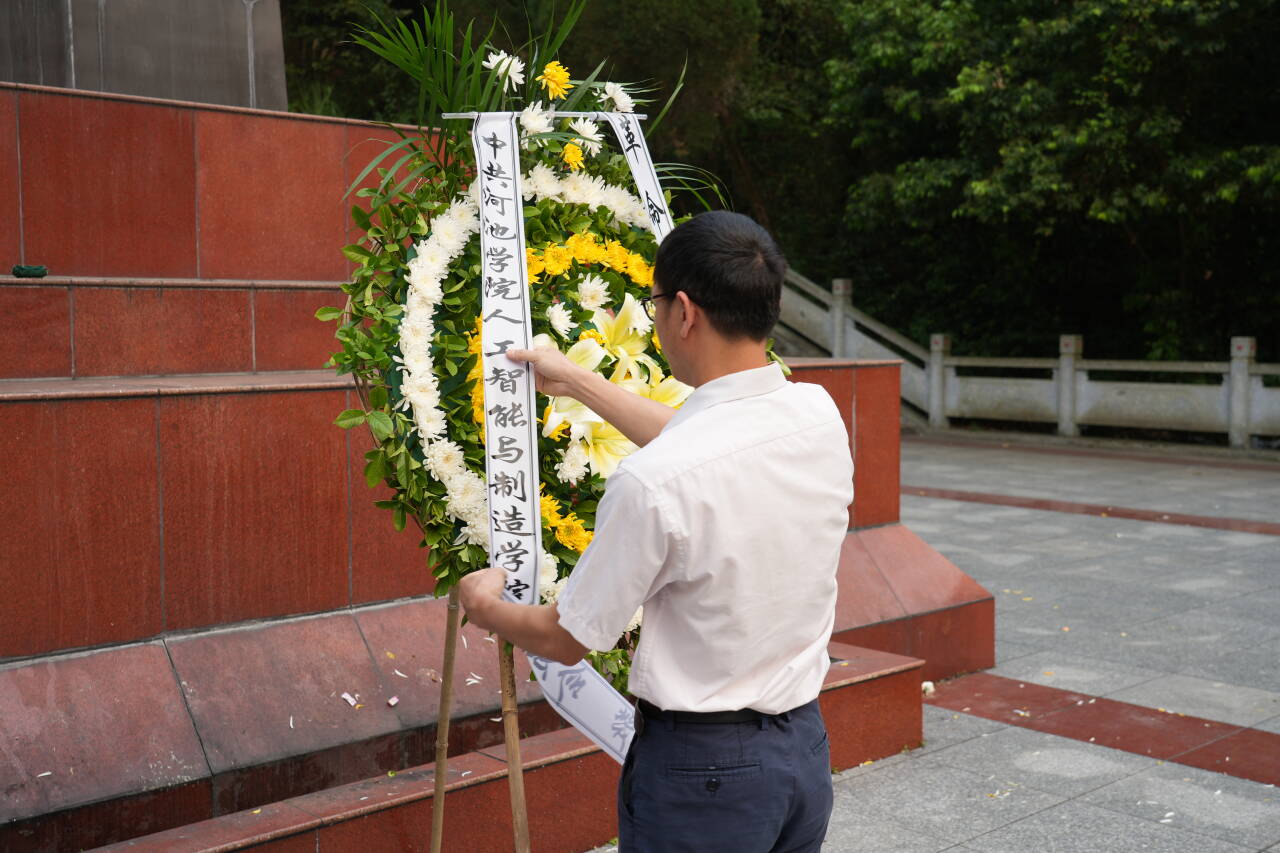 青山埋忠骨,翠柏缅英魂。为深切缅怀革命先烈、赓续红色血脉,4月8日下午,我院师生代表前往宜州区烈士陵园,举行庄重的清明祭扫活动。学院党委副书记邹健初、团委书记王联芳、辅导员陈金飞老师,以及党员代表、团委学生会干部代表共同参加。