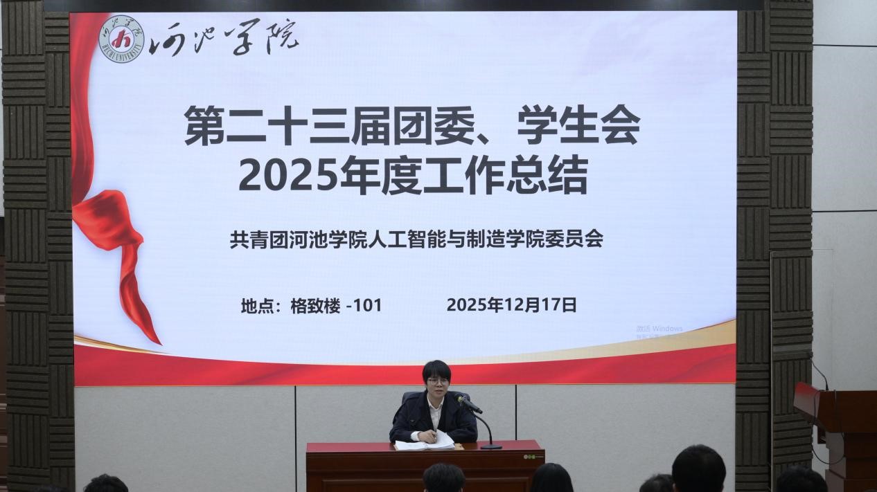 为全面总结年度工作成效,凝聚奋进力量,谋划未来发展,12月17日,河池学院人工智能与制造学院团委、学生会在格致楼-101教室召开年度总结汇报大会。学院团委书记王联芳及团委学生会全体成员参加了会议。